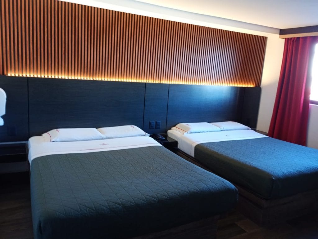 Nuestra habitación más espaciosa, diseñada para alojar cómodamente hasta 4 personas. Equipada con dos camas Queen Size, baño privado, agua caliente y WiFi, es la solución perfecta para equipos de trabajo o familias.